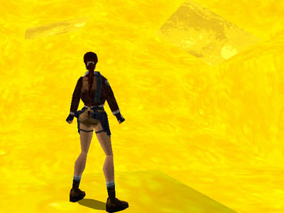 Wendet euch nach rechts und klettert in den gelben Gang. Springt auf den Block hoch, dort über die Kante hinweg und begebt euch zum Wasser. Springt hinein. In der rechten Ecke ist eine Plattform auf die ihr hinaus klettern könnt. Klettert in den Gang nach rechts hinauf. Folgt dem Pfad zu der Uzi-Munition,8/52 M16-Munition9/52 und einem kleinen Medi-Pack.10/52 Am Anfang des Ganges findet ihr einen abzweigenden Gang - nun rechts von euch - in den ihr hinauf klettern könnt. Rutscht am Ende hinab und lauft zur Höhle mit dem kleinen See geschmolzenen Goldes zurück.